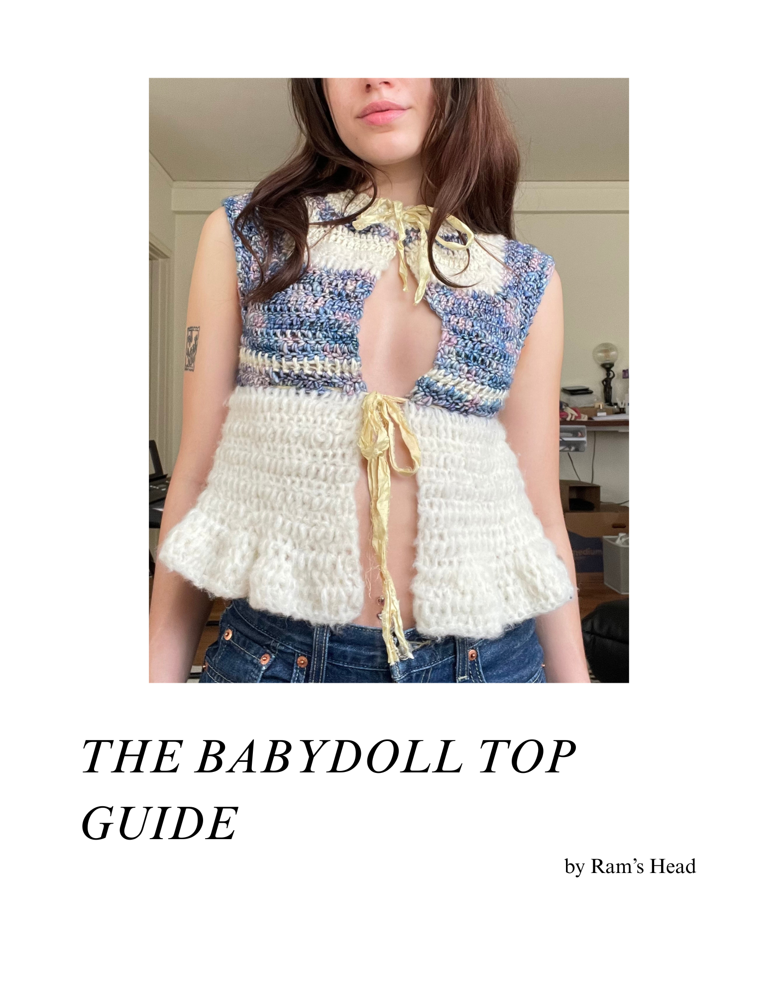 This is NOT A PHYSICAL ITEM. This is not a traditional pattern. This is a guide to help you create a crochet babydoll top, focusing on customization and personalization. This pattern is MADE TO MEASURE.